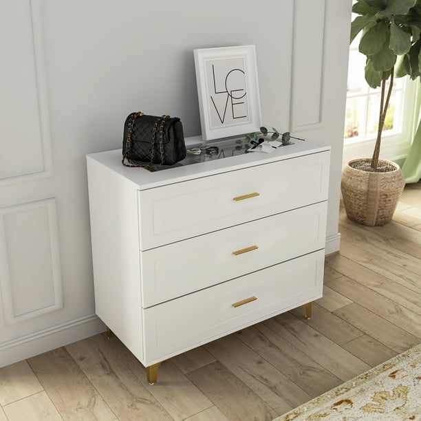 Timechee Modern 3 Drawers Dresser With Glass Top And Jewelry Organizer Chest Of Drawer End Table With Metal Legs White Walmart Com