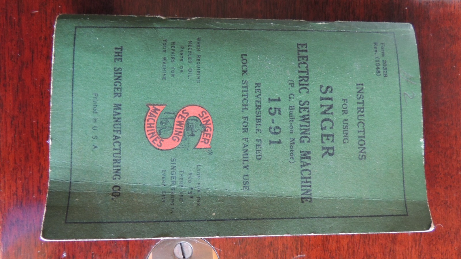1950 Singer 15 91 Sewing Machine With Queen Anne Cabinet Ebay